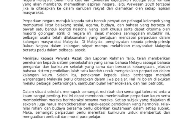 Contoh karangan perpaduan kaum bahasa melayu terbaik bagi pt3 spm stpm, berikan pendapat mengenai kepentingan dan semangat di malaysia.